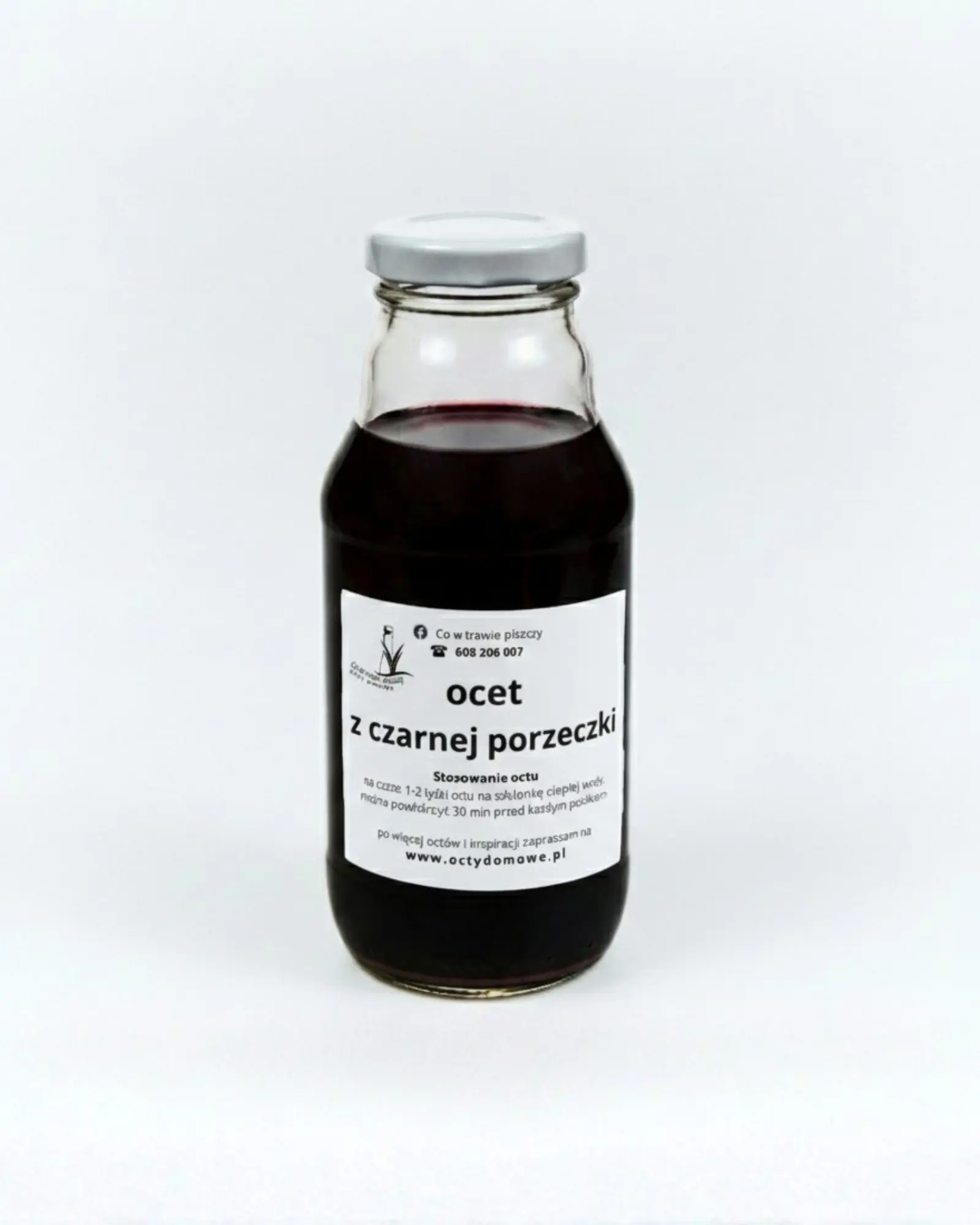 Mówi się, że czarna porzeczka to polski „superowoc” i trudno się z tym nie zgodzić. Aby zatrzymać jej niezwykłe właściwości na dłużej niż tylko jeden sezon, postanowiłam poddać ją procesowi naturalnej fermentacji. Mój ocet z czarnej porzeczki to efekt cierpliwości i szacunku do natury. Przygotowałam go ręcznie, dbając o każdy etap produkcji. Nie znajdziesz tu przyspieszaczy ani pasteryzacji, która zabija to, co cenne. Dzięki temu w Twoje ręce trafia produkt w 100% żywy, biologicznie aktywny i pełen prozdrowotnej mocy.