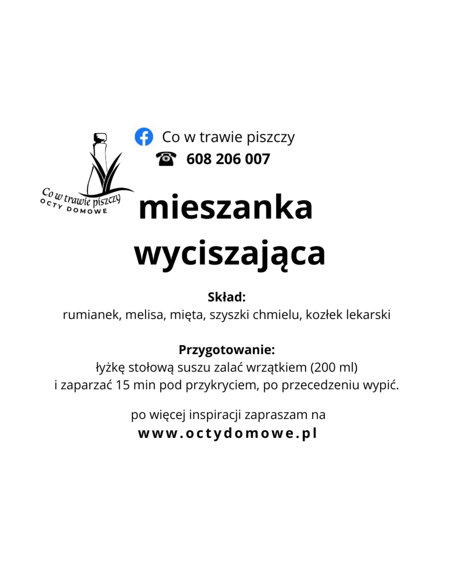 Nadmiar bodźców i przewlekły stres prowadzą do szeregu dolegliwości fizycznych: od bezsenności, przez drżenie rąk, aż po problemy z pamięcią. Moja mieszanka „Poskromienie Złośnicy” nie jest produktem masowym. To rzemieślniczy susz, który opracowałam z myślą o fizjologicznym wyciszeniu organizmu i realnym wsparciu regeneracji układu nerwowego.