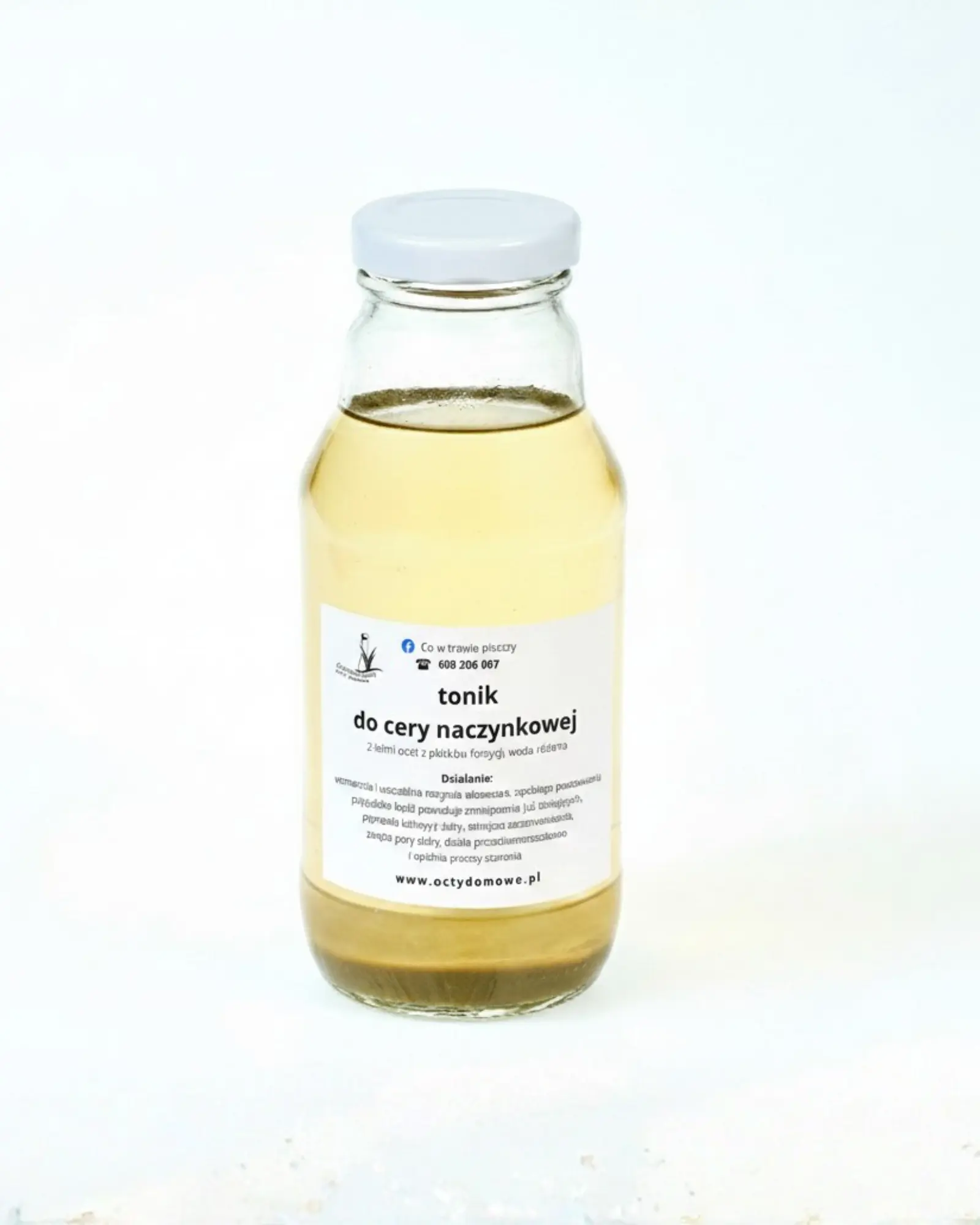 To nie jest zwykły tonik z fabryki. Jego sercem jest żywy ocet z forsycji, który przygotowuję ręcznie tradycyjną metodą fermentacji. Ponadto, dopełniłam go najczystszym hydrolatem z róży. Dzięki temu połączeniu Twoja skóra otrzymuje to, co w naturze najskuteczniejsze w walce z pajączkami. Chociaż bazą jest ocet, tonik jest niezwykle łagodny dla Twojej delikatnej skóry.